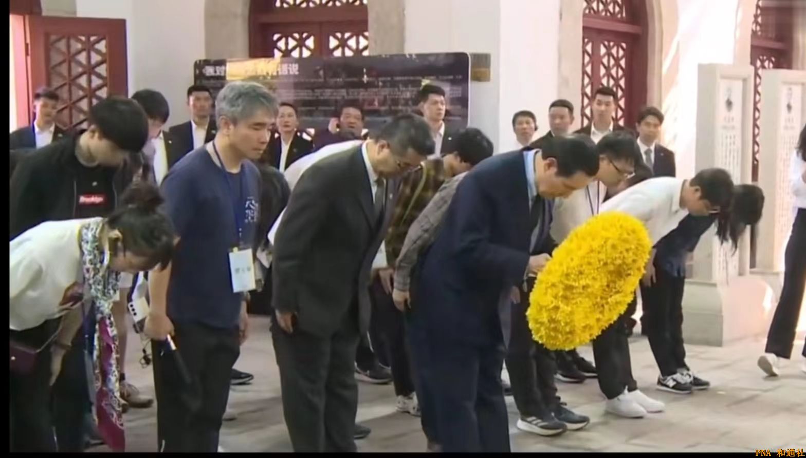他淡笑着对周围人说:我们当年存放文件时,用的就是这种老式卷宗夹,真让人怀念。抵达南京的第三天,马英九一行驱车前往南京大屠杀遇难同胞纪念馆。进入馆中后,马英九神情肃穆,为曾经遭遇的不幸的南京同胞敬献花篮,默哀悼念。南京大屠杀是所有中国人永远无法释怀的伤痛,30万手无寸铁的南京百姓,被狰狞的日寇残忍杀害。在此之前,马英九对这场大屠杀的了解仅限于书籍以及有限的照片,当他第一次看到当年惨绝人寰的照片、影像资料以及万人坑遗址,内心受到极大的冲击。他接过工作人员递来的毛笔,沉痛地在留言簿上留下七个字:历史决不可遗忘。
