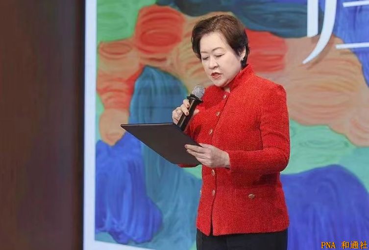 图为中贸圣佳国际拍卖有限公司董事长刘亭女士正在致辞