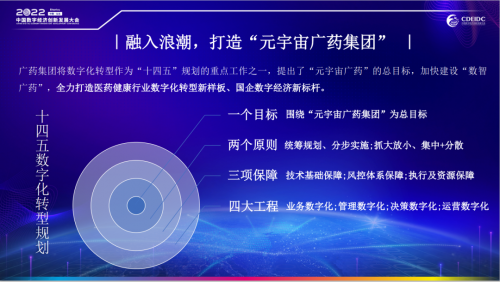 数字化转型作为广药集团“十四五”规划的重点工作之一,广药集团提出了“元宇宙广药”的总目标,加快建设“数智广药”,全力打造建立医药健康行业数字化转型示范样板,打造国企数字经济标杆。