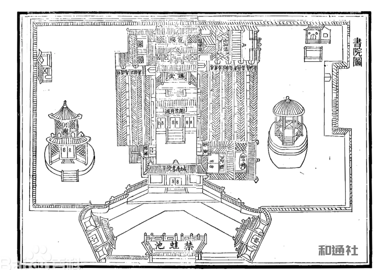 纳湖,《一统志》云:“即南湖。旧属纳氏,又名纳湖。”但南与纳系一音之转,不知到底名自何起(南湖,参看南湖港条),即今天鹅塘。当时引锡塘之水,以注纳湖。锡塘,即今之老龙潭。南轩诗:“原原锡塘水,汇此南城阴。”朱晦庵《纳湖诗》:“想像南湖水,秋来几许深。”可见那时老龙潭的水量,较今更为洪大。但是如今自妙高峰以北,如盘亘一条山脉,老龙潭的水似乎无引入天鹅塘的可能。那时想必无此形势,或者后来因兵事的关系特为增高(即如太平之役,太平军据妙高峰鳌山庙一带,江忠源据蔡公坟,递迤至新开铺,各筑坚垒相守),因风水的关系故意培护(《善化县志》谓吴三桂于城外浚濠三重,我师于豹子岭、峨眉岭等处掘坑筑壕。气泄脉断,宜急加培护。可见培护气脉是从前常有之事),就成了如今磅礴的样子了。丽泽堂、书楼、蒙轩、月榭,如今不能指其所在。据南轩《丽泽堂诗》:“门前长春水。”朱子诗:“堂前湖水深。”南轩《月榭诗》:“危栏明倒影,面面涌金波。”朱子诗:“月色三秋白,湖光四面平。与君凌倒影,上下极高明。”未必丽泽堂、月榭,竟在纳湖的旁边罢。否则,“原原锡塘水,汇此南城阴”,不仅汇到纳湖,必更汇到书院的前门,朱张的诗才有着落。当时,那里还有张家的私宅(所以朱张在此唱和,张处处觉得是主,朱处处觉得是客)。自如今的老龙潭过天鹅塘,左延至于书院坪,包括妙高峰,都为张家所有。大约紫崖先生在此颐养,南轩先生也在此讲学,那时的城南书院或只如大第中一个私塾。南轩为当时的贵公子,游从之盛,宴赏之华,自意中事,当然有此园亭第宅。但他博学修身不比寻常,朱之说他“外为军民之所仰望,内为学者之所依归”,实非溢辞。那么,寓居湖南的佳公子,千古以来,当以他为第一。
