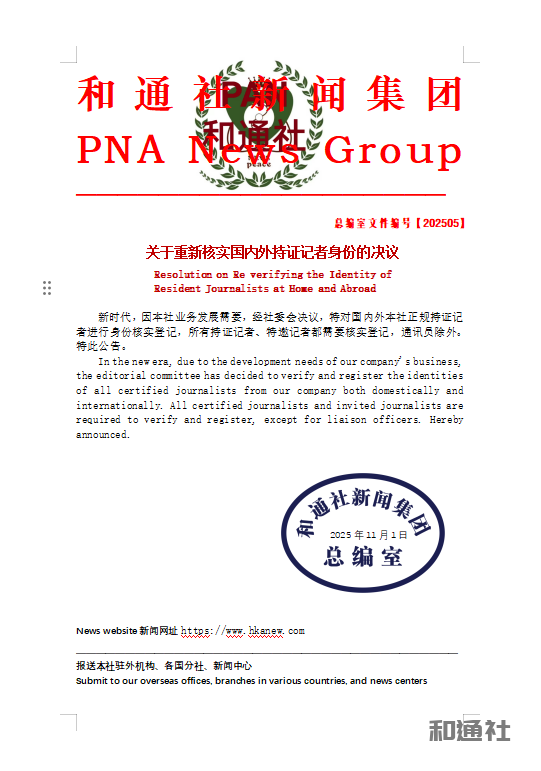In the new era, due to the development needs of our company’s business, the editorial committee has decided to verify and register the identities of all certified journalists from our company both domestically and internationally. All certified journalists and invited journalists are required to verify and register, except for liaison officers. Hereby announced.