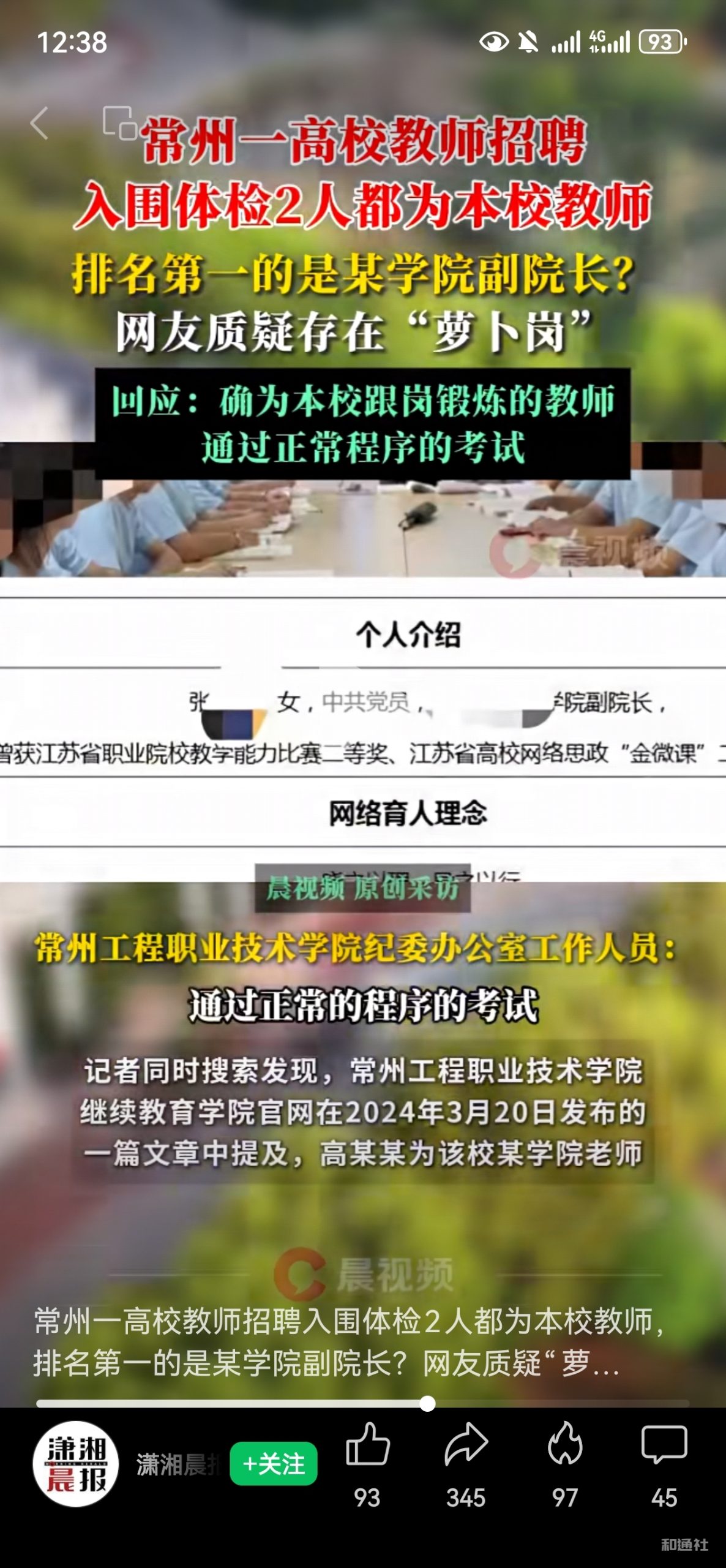 所谓的“面向社会”公开招聘,最终为何变成了“内部消化”?据爆料,在常州工程职业技术学院官网2025年10月9日发布的一篇文章中,张某某被介绍为“该校某学院副院长”。