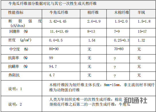 自具99%抗菌、94%抗螨、细度16um,一端与羊绒13um~16um相近;各具特性;长度与棉花相 近,各具特性;为独立的价值和价格体系,特别在本公司十九年的优化后,纤维野生长度25 ㎜优化至 31 ㎜,绝对长度38 ㎜,与长绒棉相近。 热阻抗:4.7,自具天然抗菌防螨功能, 取代添加式抗菌功能产品,特别取代抗菌银离子铜离子入侵人体风险,化纤合成纤维分解为 微塑化固态颗粒通过食物链入侵人体形成病灶,危害人体;牛角瓜纤维天然有机物质降解至 分子状态回归大自然,深度保护人体安全,维护生命体的和平使者。